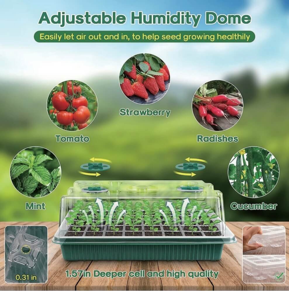 - Each transparent dome has 4 adjustable circular vents, which easily adjust the inner humidity and temperature by rotating the regulator, promoting air circulation. The internal humidity is adjustable from 50-100% which is great for plant growth