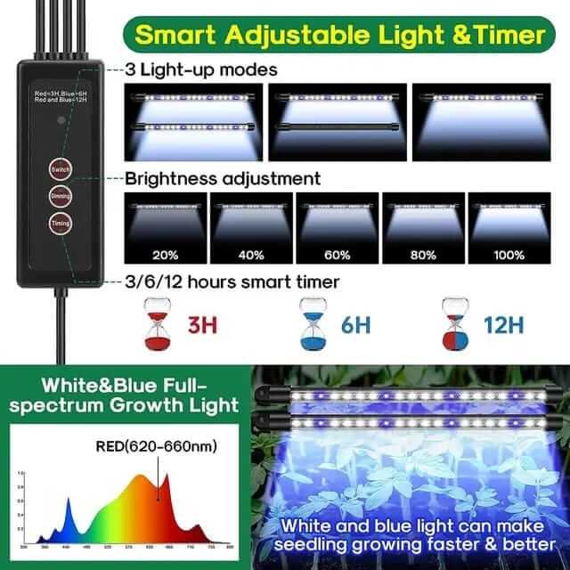 - Propagator with grow light has 5 dimmable level and 3 timing functions (3H/6H/12H)
