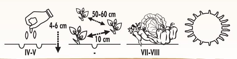 Very early-maturing, high-yielding variety. Even the pods on the lower part of the plant yield a harvest. Plants grow to be 80-90 cm tall. Pods are 22-24 cm long with 7-8 seeds. Freshly harvested seeds are green and turn to light violet color after drying. Sown as early as possible under favorable weather conditions. Seedlings can withstand frosts of up to -4 °C. Grows best in fertile, non-acid, moist loamy soil.