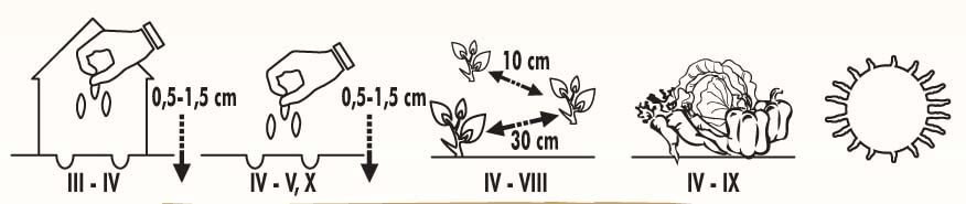 Early leaf lettuce variety. Cultivated for spring, summer and autumn harvest. Can be sown in a glasshouse and in the open field, do not overgrow for a long time. Grow within 35–50 days. Leaves are slightly wrinkled, fan type, do not form loafs. Begin to germinate, when the soil heats up to +4 ºC. Grow best in humus rich, water-permeable soil. Grow poorly in the shade. When sown to the soil, 3–6 grams of seeds are needed per 10sq.m.