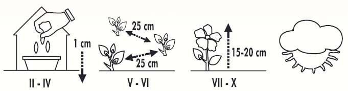 Annual, abundantly blooming 15-20 cm flowers. Flowers are 3-4 cm in diameter, single. Grow well and bloom in semi-shade, in the northern side, protected from wind. For planters, beds, balconies, pots. Bloom in abundance and for long periods. Continue blooming when moved indoors before frosts. Complex fertiliser is recommended during blooming.
