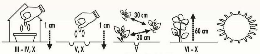 Annual 60 cm flowers. Flowers are up to 10 cm in diameter, the plant is branched. Grow best in fertile, well-drained soil permeable to air, sunny location. Resistant to frost. Planted in annual beds, flowers are cut for bouquets. Start blooming in 90 days after sowing. Seed at +18 °C temperature germinate within 7-11 days. Can be sown in October directly into the soil, then in spring transplant seedlings to the desired location.