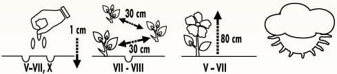 Perennial, one of the most beautiful and favorite flowers for bouquets. Grow to 80 cm height. Flowers are up to 5 cm in diameter, bi-colour, the stem is branched. Seeds germinate within 12-16 days. Bloom in the second year after sowing. Grow well in humid, fertile soil. Planted in beds with other perennials, flowers are picked for bouquets. Can grow for many years in the same place; do not require cover in winter.