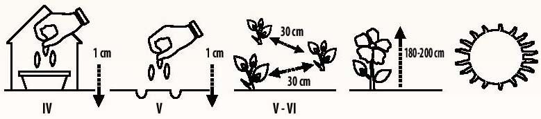 Annual, climbing, fast and easy to grow flowers. Abundant, bright, bell-shaped blooms. Sunny location protected against winds should be chosen. These flowers are perfect for vertical garden. Fertile soil should be selected for growing.