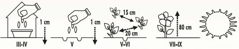 Annual 80 cm height flowers with original bloom. Flowers are of irregular shape, in broom-shaped clusters. Flowers begin to bloom from the bottom, each raceme bloom for about 12 days, the entire plant bloom for about 3 to 3.5 months. Grow and bloom both in sun and light shade, loose soil. For planters, floor pots, flowers are picked for bouquets. Resistant to short-term frost.