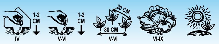 Medium-early hybrid variety. Grown outdoors. Fruits are delicious, not bitter. Does not sallow, high yielding, suitable for pickling. Used fresh, for canning or souring. Sown when the soil heats up (in the depth of 10 cm) from +13 to +14 ºC.