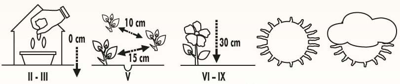 Annual, very extensively blooming flowers. For balconies, hanging baskets. Flowers are 0.5-1.0 cm in diameter, stem length is 30 cm. Seeds and very small, not covered with soil, only lightly press into the soil surface. The sown area most be constantly moist. Cover during germination, this will help to preserve humidity and warmth, and the seeds will germinate quicker and more uniformly. Start blooming in 2 months after germination.