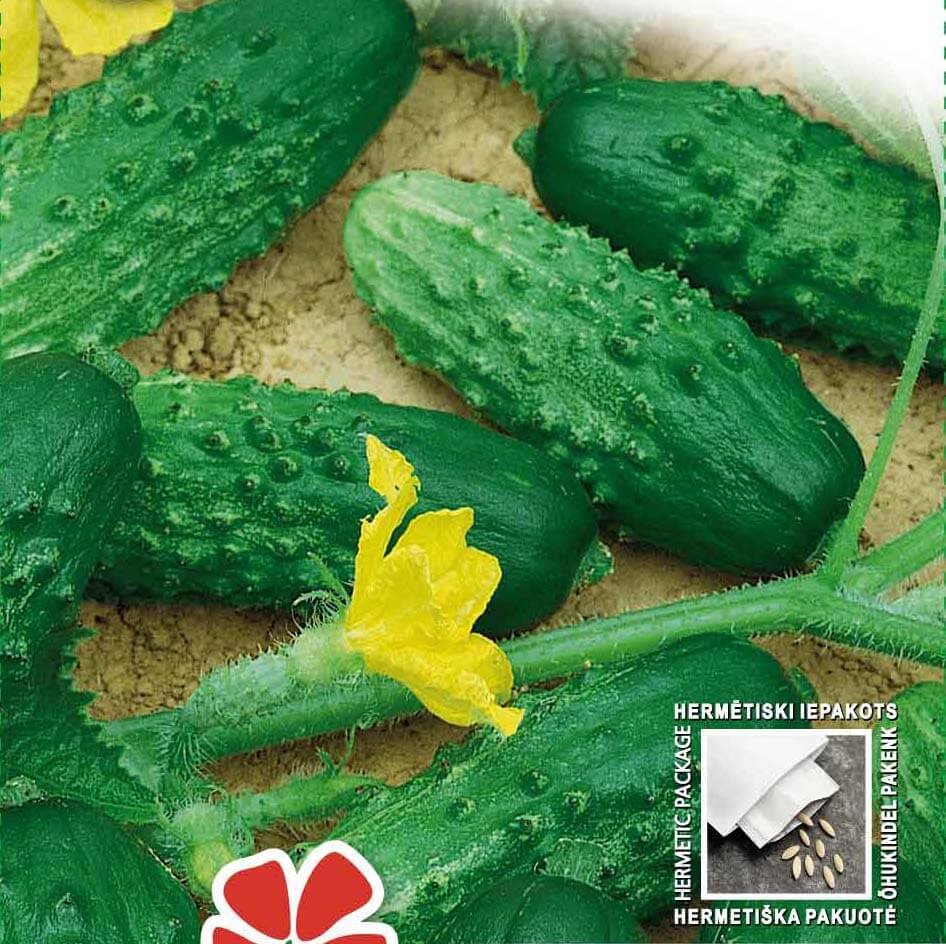 Medium-early hybrid variety. Harvested in 48–52 days after germination. Fruits with black pricks, delicious and fragrant suitable for pickling, high yielding. Used fresh, for canning or souring. Grown in greenhouses or outdoors.
