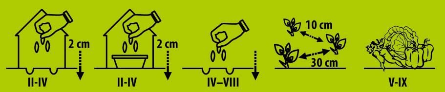 Leafy vegetables, grown similar to lettuce. Grow quickly, not demanding to the soil. Fresh, scented leaves, with a taste of nuts are used for food. Perfectly suit for cheese, salad, leaves are used for the decoration of dishes. It grows quickly, so to have the fragrant leaves throughout the summer, we recommend seeding them a few times. Can be grown together with salad. Sown on the windowsill, in planters, in garden beds.