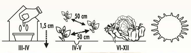 Kale, unlike other cabbages, are used not for loafs but for leaves -these cabbages do not make loafs. Plants grow up to 60 cm height, dark violet leaves, that are used for food. They are used for soups, salads, food decoration. Plants tolerate up significant frost, therefore if you leave them in winter, you will have fresh leaves even in December.