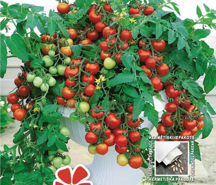 A gardeners favorite dwarf, high yielding variety. Suitable for potting indoors and in the balconies. The plant stem grows up to 20–25 cm in height. The fruit is round, weighs about 30 g. Used fresh or canned.