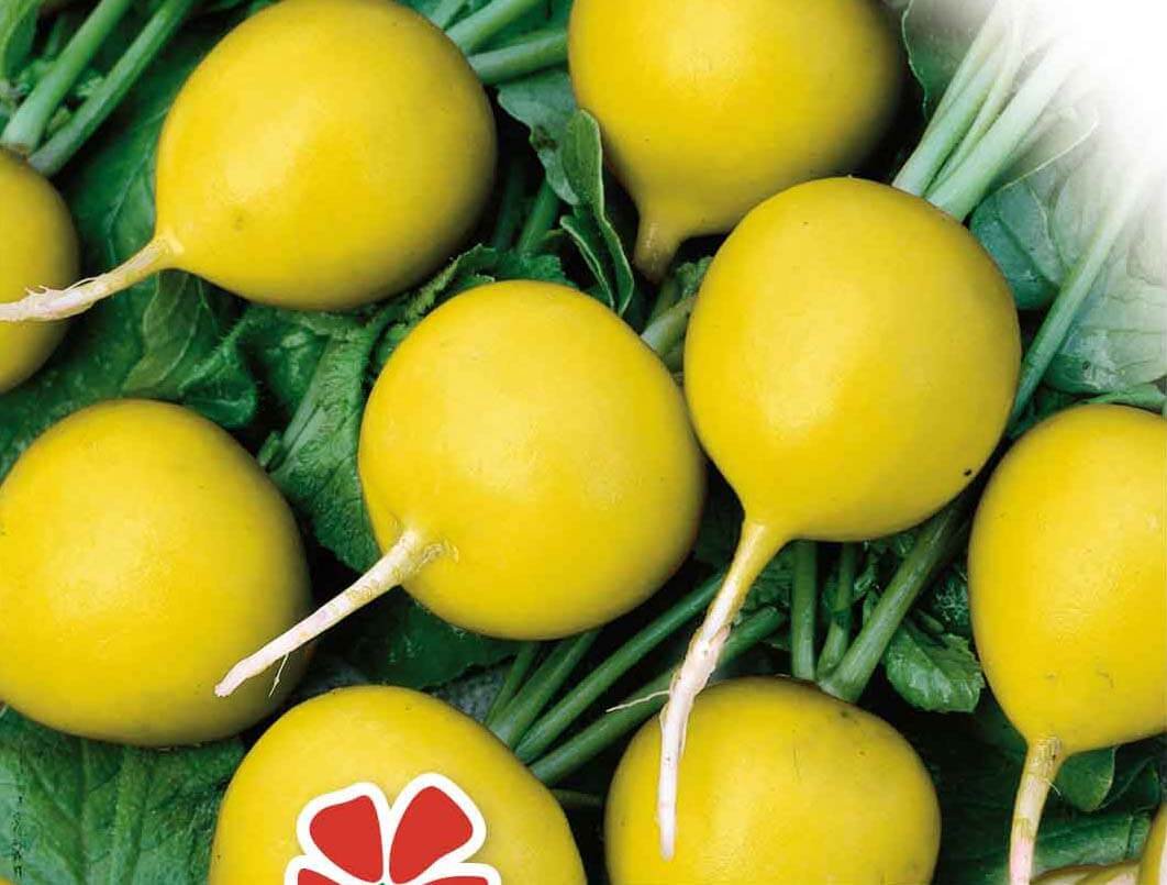 A medium-late variety. Harvested in 36–38 days after germination. The radishes are large, round, yellow colored, do not tend to overgrow. The flesh is white, juicy. Grows best in light to moderate, non-acid (pH 6-7) soil. Resistant to pithiness, yielding.